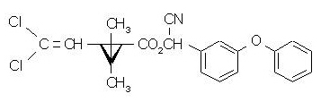【化學名稱】:(RS)-a-氰基-3-苯氧基芐基(1RS,3RS;1RS,3SR)-3-(2,2-二氯乙烯)-2,2-二甲基環丙烷羧酸酯;